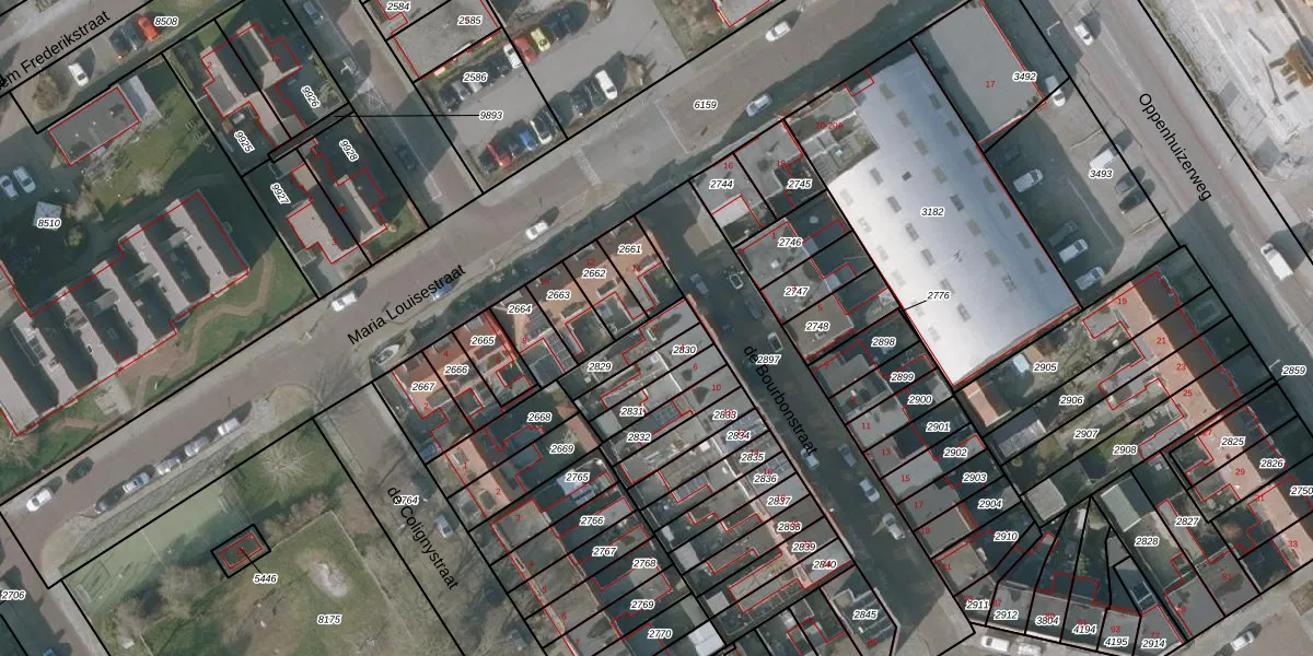Het perceel waarop de Bourbonstraat 2 staat heeft een oppervlakte van 94 m². Dit is een klein perceel. De perceeloppervlakte wordt geregistreerd door het Kadaster. Gedetailleerde informatie over de maten van dit perceel kunt u vinden in het rapport Kadastrale kaart met maatvoering van de Bourbonstraat 2.