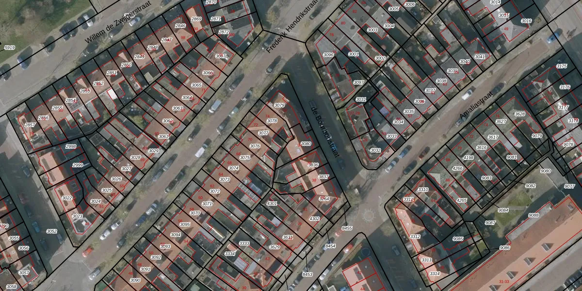 Gebruik de zoekbalk of klik op een perceel voor informatie over de adressen binnen dit perceel.