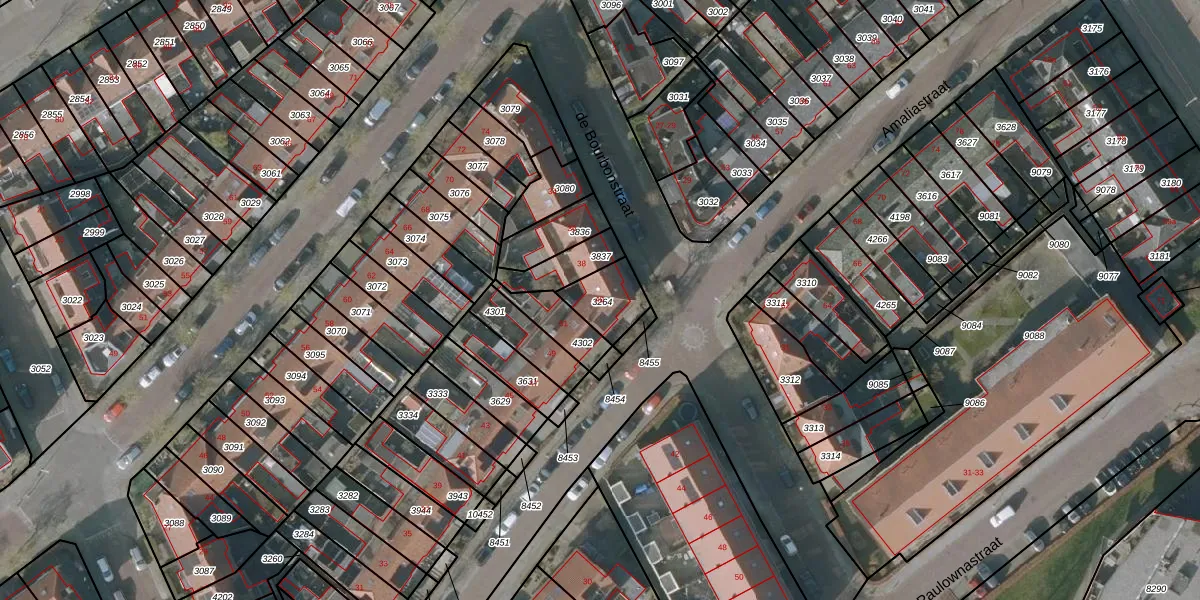 Het perceel waarop de Bourbonstraat 40 staat heeft een oppervlakte van 126 m². Dit is een middelgroot perceel. De perceeloppervlakte wordt geregistreerd door het Kadaster. Gedetailleerde informatie over de maten van dit perceel kunt u vinden in het rapport Kadastrale kaart met maatvoering van de Bourbonstraat 40.