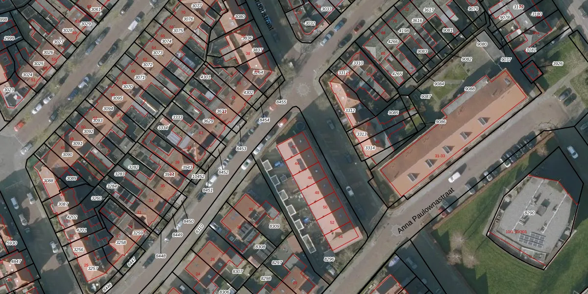Het perceel waarop de Bourbonstraat 42 staat heeft een oppervlakte van 1078 m². Dit is een zeer groot perceel. De perceeloppervlakte wordt geregistreerd door het Kadaster. Gedetailleerde informatie over de maten van dit perceel kunt u vinden in het rapport Kadastrale kaart met maatvoering van de Bourbonstraat 42.