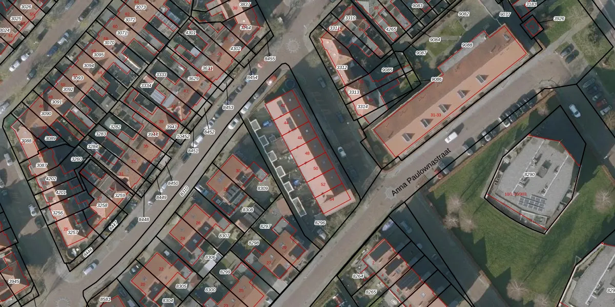 Het perceel waarop de Bourbonstraat 48 staat heeft een oppervlakte van 1078 m². Dit is een zeer groot perceel. De perceeloppervlakte wordt geregistreerd door het Kadaster. Gedetailleerde informatie over de maten van dit perceel kunt u vinden in het rapport Kadastrale kaart met maatvoering van de Bourbonstraat 48.