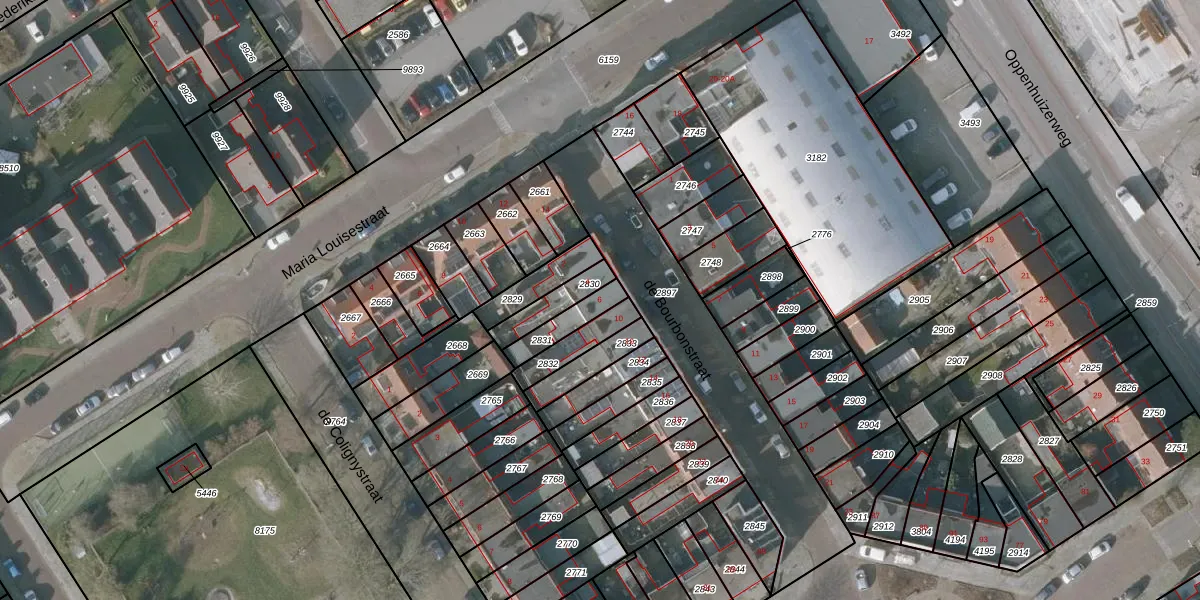 Het perceel waarop de Bourbonstraat 6 staat heeft een oppervlakte van 90 m². Dit is een klein perceel. De perceeloppervlakte wordt geregistreerd door het Kadaster. Gedetailleerde informatie over de maten van dit perceel kunt u vinden in het rapport Kadastrale kaart met maatvoering van de Bourbonstraat 6.