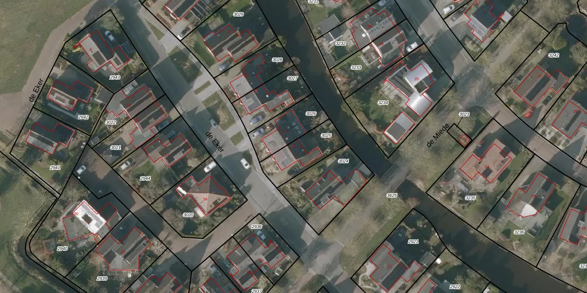 Het perceel waarop de Eker 19 staat heeft een oppervlakte van 302 m². Dit is een groot perceel. De perceeloppervlakte wordt geregistreerd door het Kadaster. Gedetailleerde informatie over de maten van dit perceel kunt u vinden in het rapport Kadastrale kaart met maatvoering van de Eker 19.