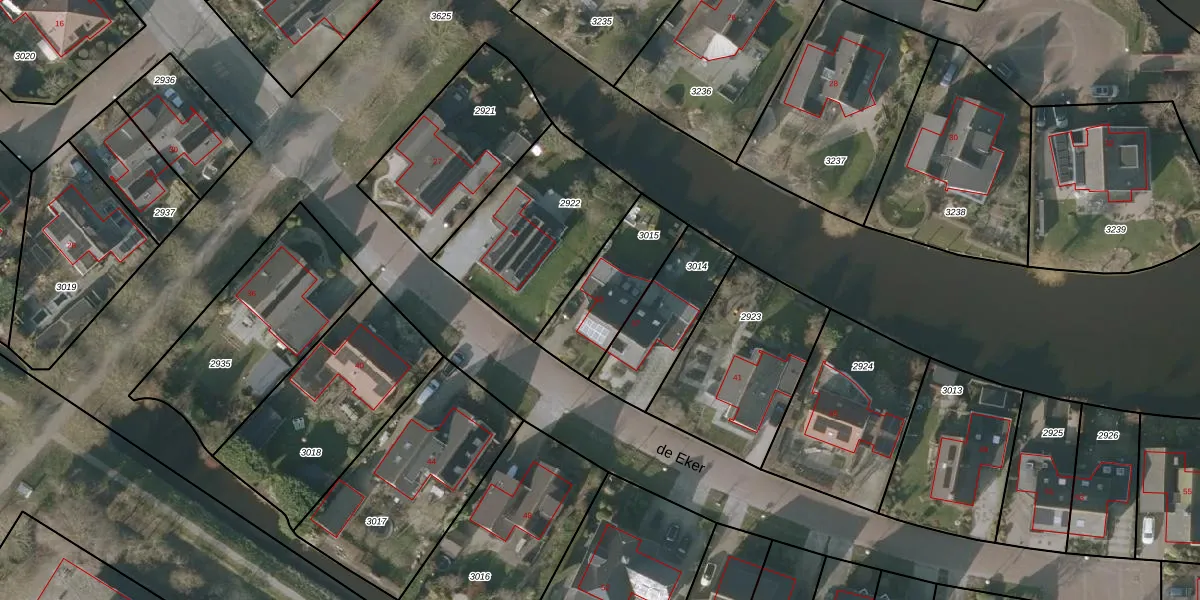 Het perceel waarop de Eker 35 staat heeft een oppervlakte van 314 m². Dit is een groot perceel. De perceeloppervlakte wordt geregistreerd door het Kadaster. Gedetailleerde informatie over de maten van dit perceel kunt u vinden in het rapport Kadastrale kaart met maatvoering van de Eker 35.