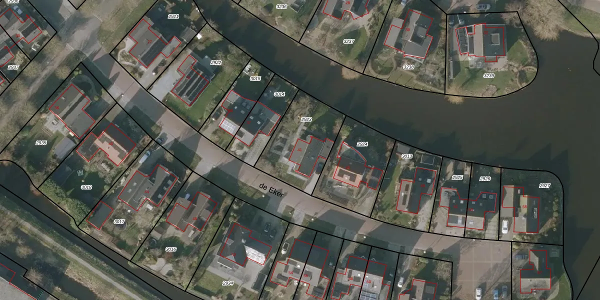 de Eker 41 is gelegen op kadastraal perceel SNE00D2923. Deze kadastrale aanduiding is uniek en wordt gebruikt door het Kadaster om eigendomsrechten en andere zakelijke rechten vast te leggen. Het perceel maakt onderdeel uit van de kadastrale gemeente Sneek.