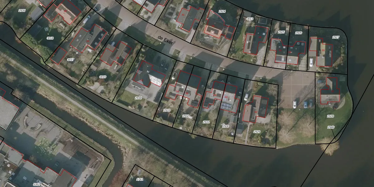 Het perceel waarop de Eker 56 staat heeft een oppervlakte van 360 m². Dit is een groot perceel. De perceeloppervlakte wordt geregistreerd door het Kadaster. Gedetailleerde informatie over de maten van dit perceel kunt u vinden in het rapport Kadastrale kaart met maatvoering van de Eker 56.