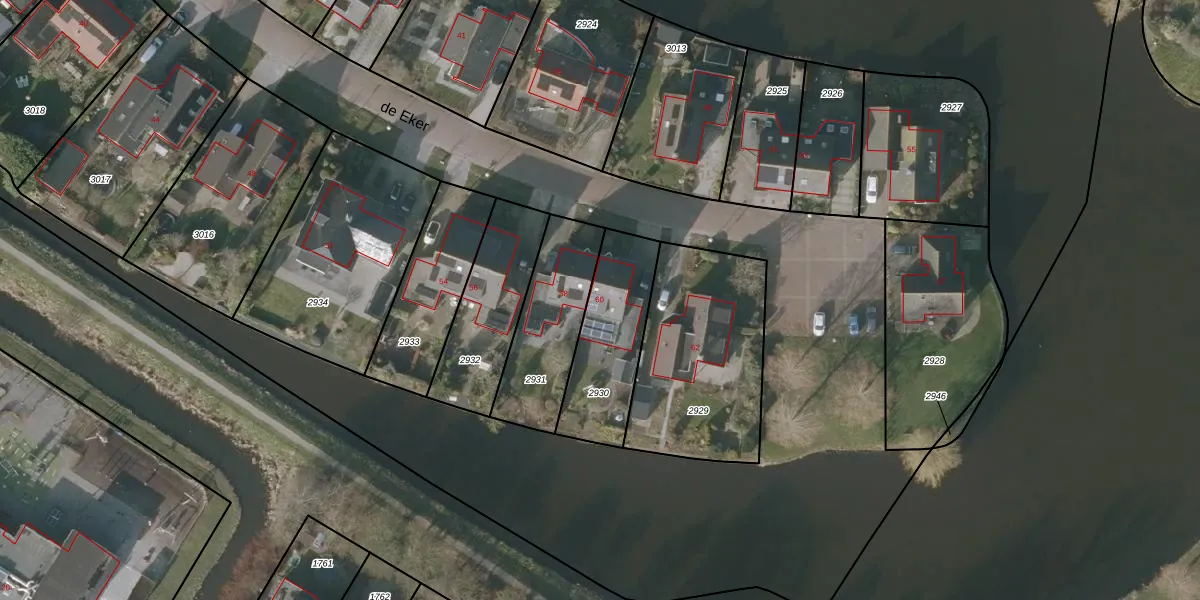 de Eker 60 is gelegen op kadastraal perceel SNE00D2930. Deze kadastrale aanduiding is uniek en wordt gebruikt door het Kadaster om eigendomsrechten en andere zakelijke rechten vast te leggen. Het perceel maakt onderdeel uit van de kadastrale gemeente Sneek.
