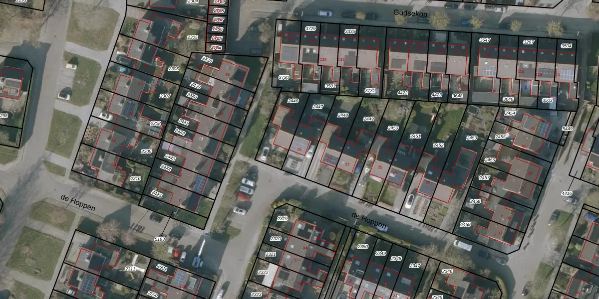 de Hoppen 19 is gelegen op kadastraal perceel SNE00D2447. Deze kadastrale aanduiding is uniek en wordt gebruikt door het Kadaster om eigendomsrechten en andere zakelijke rechten vast te leggen. Het perceel maakt onderdeel uit van de kadastrale gemeente Sneek.