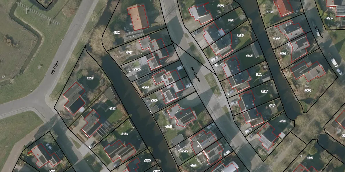 de Kamp 10 is gelegen op kadastraal perceel SNE00D3230. Deze kadastrale aanduiding is uniek en wordt gebruikt door het Kadaster om eigendomsrechten en andere zakelijke rechten vast te leggen. Het perceel maakt onderdeel uit van de kadastrale gemeente Sneek.