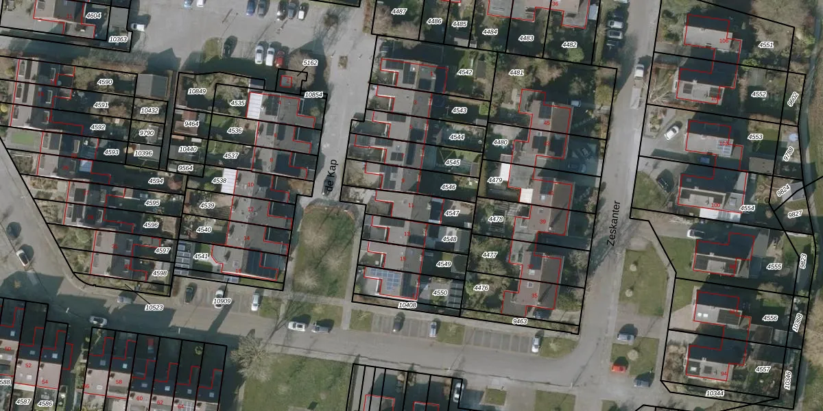Gebruik de zoekbalk of klik op een perceel voor informatie over de adressen binnen dit perceel.