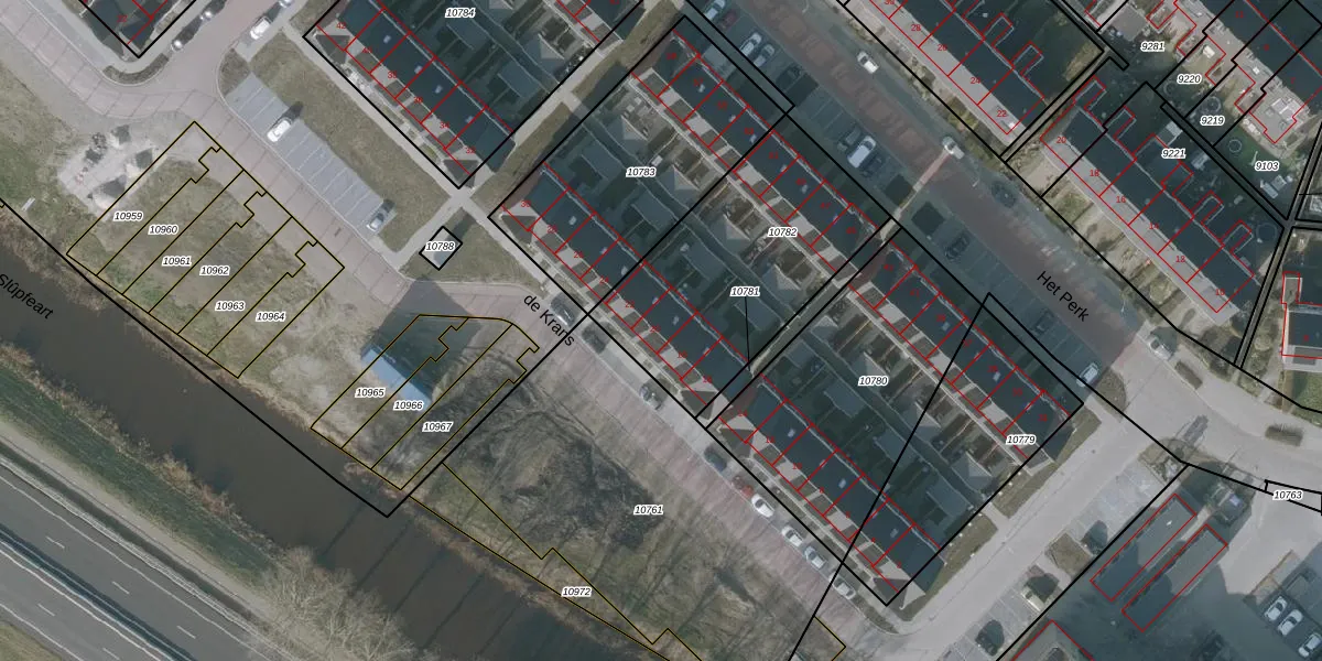 Het adres is gelegen op perceel 10782 in de sectie C en de kadastrale gemeente Sneek. De kadastrale aanduiding is aldus SNE00-C-10782. De gemiddelde perceelgrootte in Sneek is 2093,75 m². Dit perceel is kleiner: de perceeloppervlakte bedraagt 956 m². De grootste perceeloppervlakte in de kadastrale gemeente is 61,3 ha. De kleinste oppervlakte bedraagt 0 m². Op het perceel liggen in totaal 8 adressen. In de Basisregistratie Kadaster (BRK) werden de grenzen van het perceel geregistreerd op 03-07-2023.