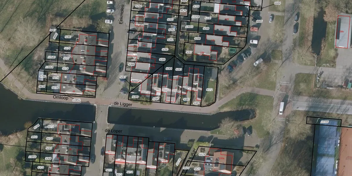 Gebruik de zoekbalk of klik op een perceel voor informatie over de adressen binnen dit perceel.