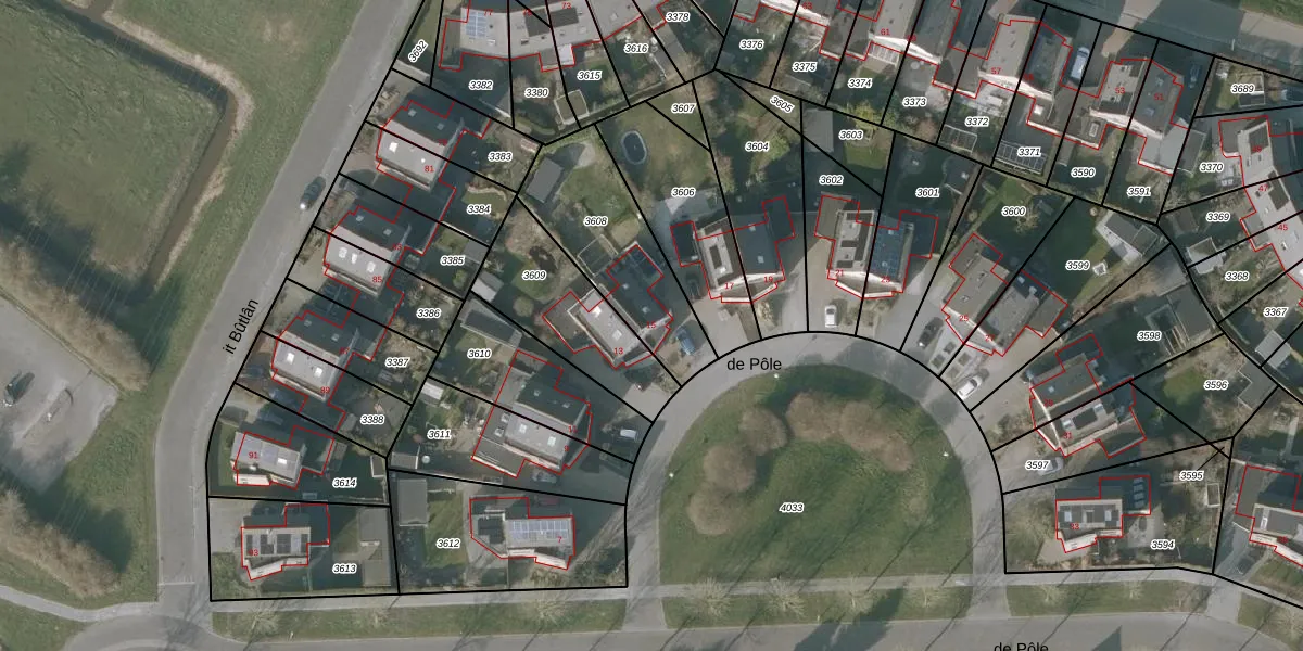 Het perceel waarop de Pôle 15 staat heeft een oppervlakte van 487 m². Dit is een groot perceel. De perceeloppervlakte wordt geregistreerd door het Kadaster. Gedetailleerde informatie over de maten van dit perceel kunt u vinden in het rapport Kadastrale kaart met maatvoering van de Pôle 15.