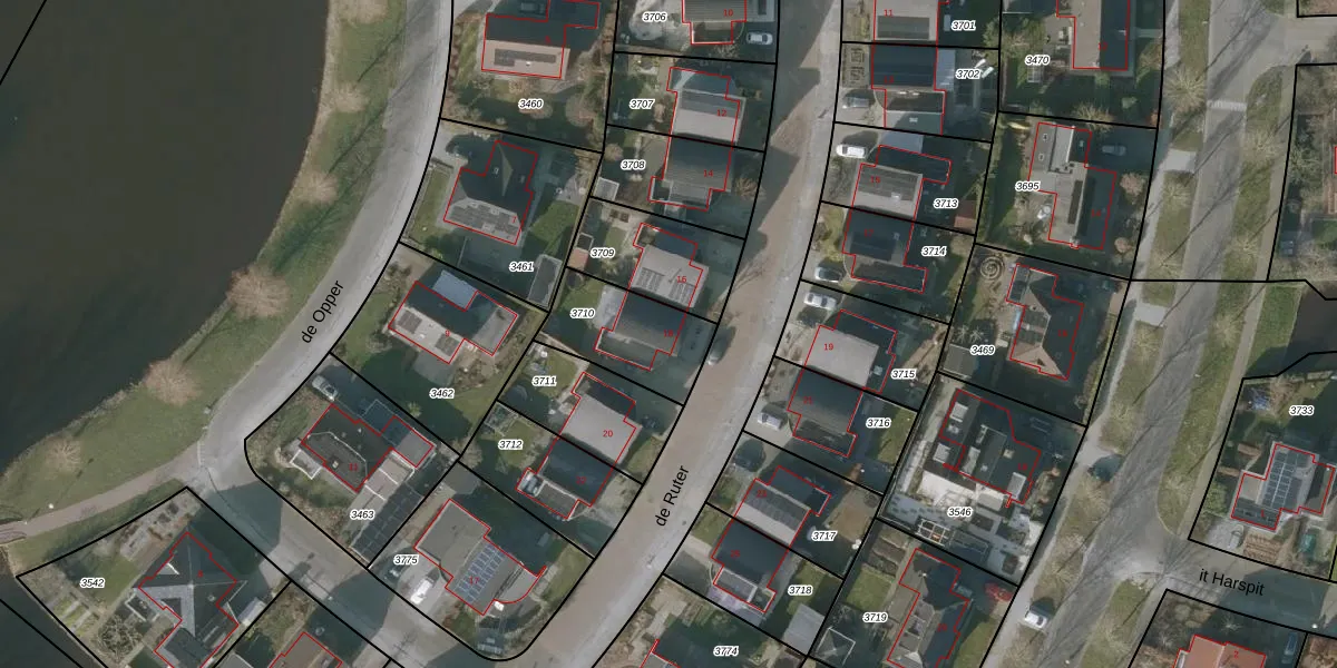 de Ruter 18 is gelegen op kadastraal perceel SNE00D3710. Deze kadastrale aanduiding is uniek en wordt gebruikt door het Kadaster om eigendomsrechten en andere zakelijke rechten vast te leggen. Het perceel maakt onderdeel uit van de kadastrale gemeente Sneek.