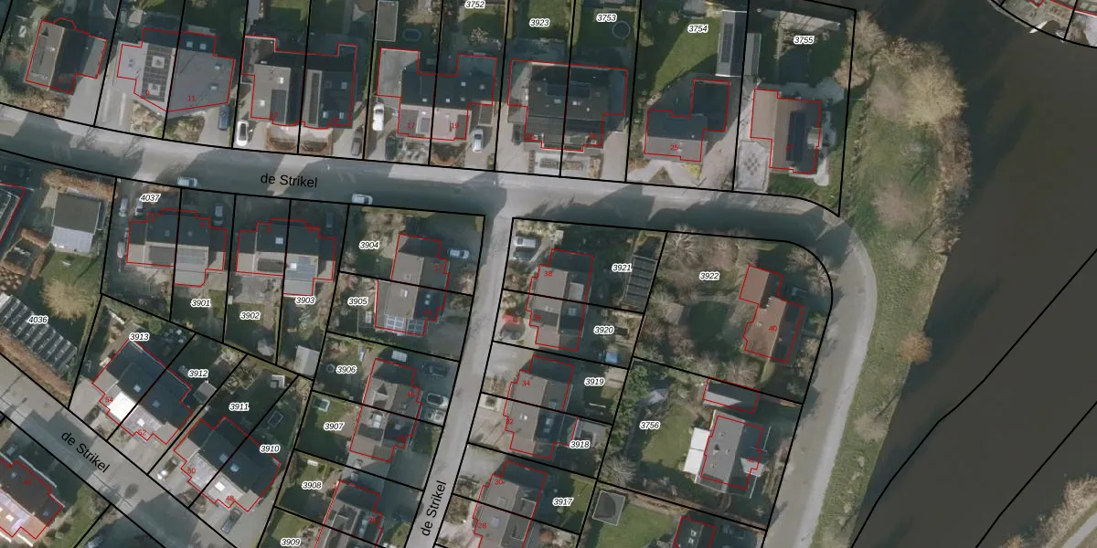 Het perceel waarop de Strikel 38 staat heeft een oppervlakte van 388 m². Dit is een groot perceel. De perceeloppervlakte wordt geregistreerd door het Kadaster. Gedetailleerde informatie over de maten van dit perceel kunt u vinden in het rapport Kadastrale kaart met maatvoering van de Strikel 38.