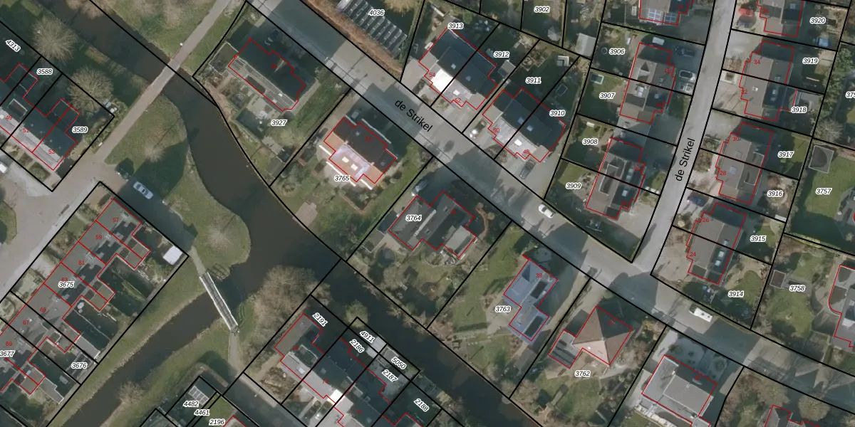 Het perceel waarop de Strikel 41 staat heeft een oppervlakte van 781 m². Dit is een groot perceel. De perceeloppervlakte wordt geregistreerd door het Kadaster. Gedetailleerde informatie over de maten van dit perceel kunt u vinden in het rapport Kadastrale kaart met maatvoering van de Strikel 41.
