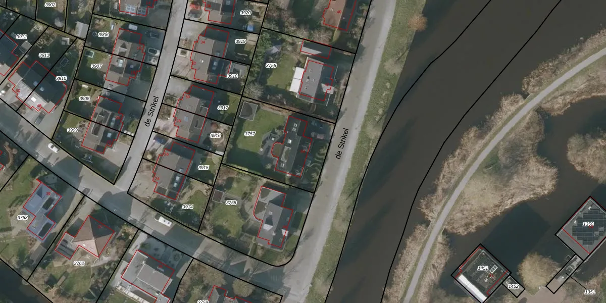 Het perceel waarop de Strikel 44 staat heeft een oppervlakte van 763 m². Dit is een groot perceel. De perceeloppervlakte wordt geregistreerd door het Kadaster. Gedetailleerde informatie over de maten van dit perceel kunt u vinden in het rapport Kadastrale kaart met maatvoering van de Strikel 44.