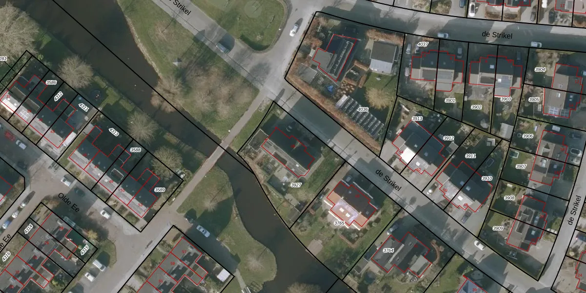 de Strikel 45 is gelegen op kadastraal perceel SNE00D3927. Deze kadastrale aanduiding is uniek en wordt gebruikt door het Kadaster om eigendomsrechten en andere zakelijke rechten vast te leggen. Het perceel maakt onderdeel uit van de kadastrale gemeente Sneek.