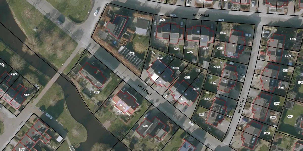 de Strikel 54 is gelegen op kadastraal perceel SNE00D3913. Deze kadastrale aanduiding is uniek en wordt gebruikt door het Kadaster om eigendomsrechten en andere zakelijke rechten vast te leggen. Het perceel maakt onderdeel uit van de kadastrale gemeente Sneek.