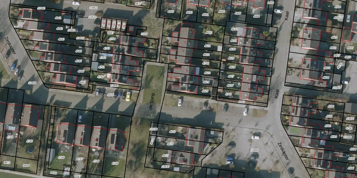de Vang 13 is gelegen op kadastraal perceel SNE00C4625. Deze kadastrale aanduiding is uniek en wordt gebruikt door het Kadaster om eigendomsrechten en andere zakelijke rechten vast te leggen. Het perceel maakt onderdeel uit van de kadastrale gemeente Sneek.
