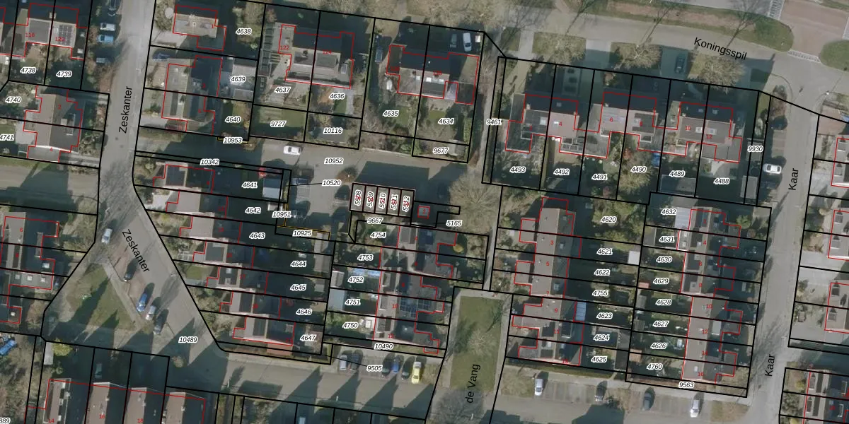 Het perceel waarop de Vang 2 staat heeft een oppervlakte van 43 m². Dit is een klein perceel. De perceeloppervlakte wordt geregistreerd door het Kadaster. Gedetailleerde informatie over de maten van dit perceel kunt u vinden in het rapport Kadastrale kaart met maatvoering van de Vang 2.
