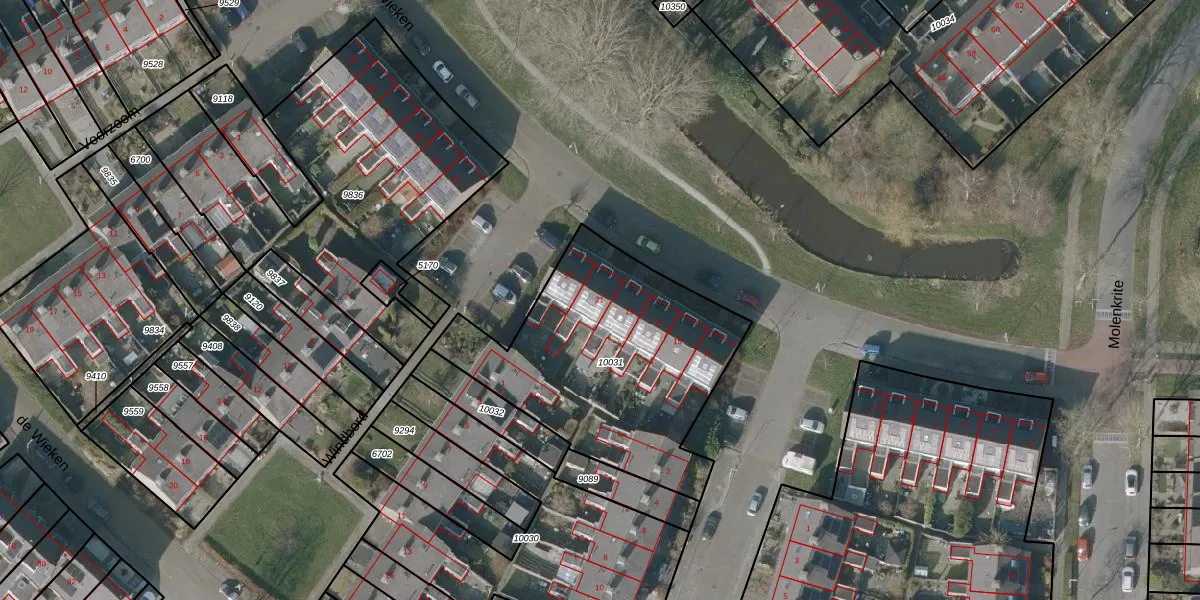 de Wieken 21 is gelegen op kadastraal perceel SNE00C10031. Deze kadastrale aanduiding is uniek en wordt gebruikt door het Kadaster om eigendomsrechten en andere zakelijke rechten vast te leggen. Het perceel maakt onderdeel uit van de kadastrale gemeente Sneek.