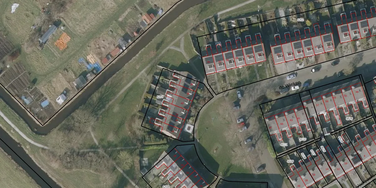 de Wieken 38 is gelegen op kadastraal perceel SNE00C6203. Deze kadastrale aanduiding is uniek en wordt gebruikt door het Kadaster om eigendomsrechten en andere zakelijke rechten vast te leggen. Het perceel maakt onderdeel uit van de kadastrale gemeente Sneek.