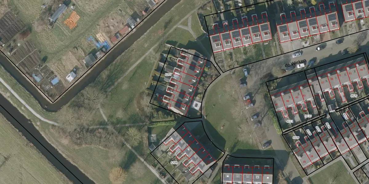 de Wieken 42 is gelegen op kadastraal perceel SNE00C6203. Deze kadastrale aanduiding is uniek en wordt gebruikt door het Kadaster om eigendomsrechten en andere zakelijke rechten vast te leggen. Het perceel maakt onderdeel uit van de kadastrale gemeente Sneek.
