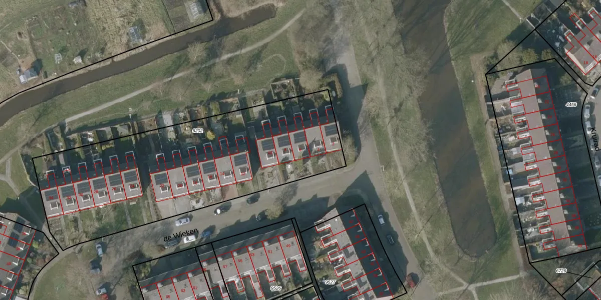 de Wieken 6 is gelegen op kadastraal perceel SNE00C6202. Deze kadastrale aanduiding is uniek en wordt gebruikt door het Kadaster om eigendomsrechten en andere zakelijke rechten vast te leggen. Het perceel maakt onderdeel uit van de kadastrale gemeente Sneek.