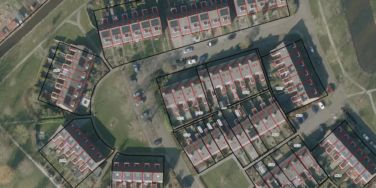 Het perceel waarop de Wieken 63 staat heeft een oppervlakte van 606 m². Dit is een groot perceel. De perceeloppervlakte wordt geregistreerd door het Kadaster. Gedetailleerde informatie over de maten van dit perceel kunt u vinden in het rapport Kadastrale kaart met maatvoering van de Wieken 63.