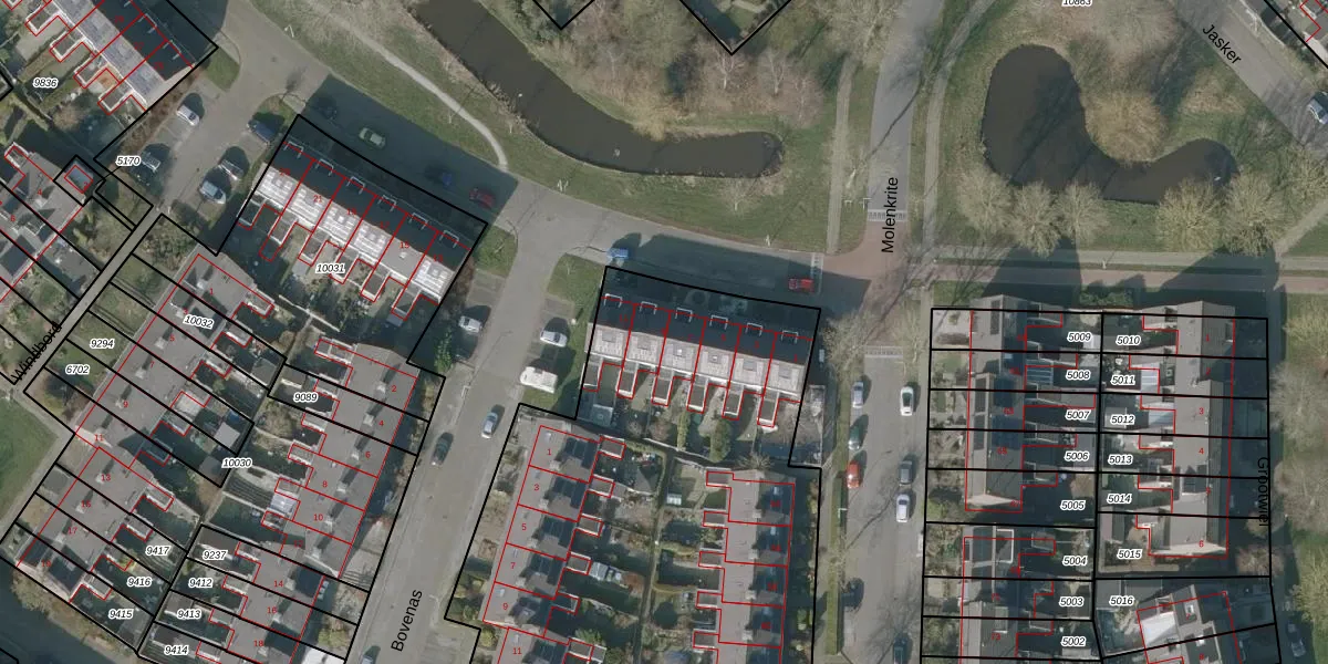 de Wieken 9 is gelegen op kadastraal perceel SNE00C6198. Deze kadastrale aanduiding is uniek en wordt gebruikt door het Kadaster om eigendomsrechten en andere zakelijke rechten vast te leggen. Het perceel maakt onderdeel uit van de kadastrale gemeente Sneek.