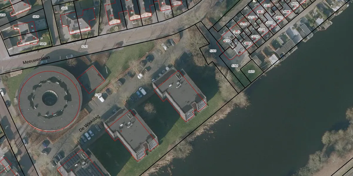 Het perceel waarop De Wiekslag 1-002 staat heeft een oppervlakte van 8370 m². Dit is een zeer groot perceel. De perceeloppervlakte wordt geregistreerd door het Kadaster. Gedetailleerde informatie over de maten van dit perceel kunt u vinden in het rapport Kadastrale kaart met maatvoering van De Wiekslag 1-002.