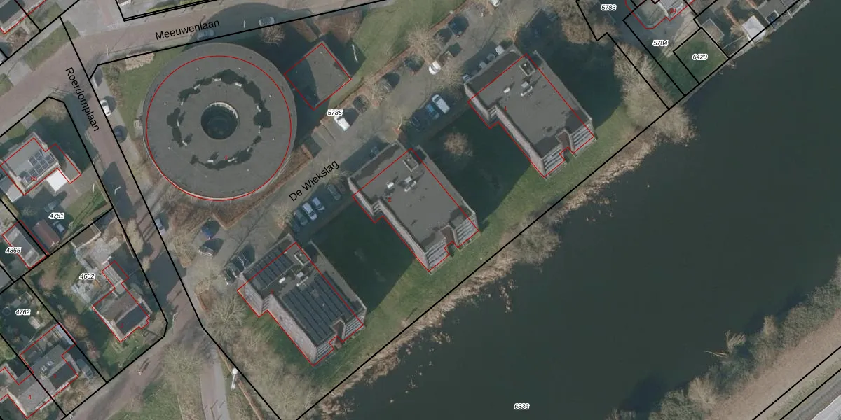 Het perceel waarop De Wiekslag 2-202 staat heeft een oppervlakte van 8370 m². Dit is een zeer groot perceel. De perceeloppervlakte wordt geregistreerd door het Kadaster. Gedetailleerde informatie over de maten van dit perceel kunt u vinden in het rapport Kadastrale kaart met maatvoering van De Wiekslag 2-202.