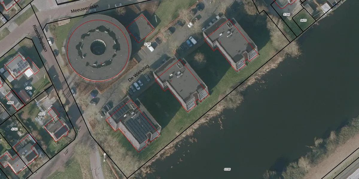 Het perceel waarop De Wiekslag 2-201 staat heeft een oppervlakte van 8370 m². Dit is een zeer groot perceel. De perceeloppervlakte wordt geregistreerd door het Kadaster. Gedetailleerde informatie over de maten van dit perceel kunt u vinden in het rapport Kadastrale kaart met maatvoering van De Wiekslag 2-201.
