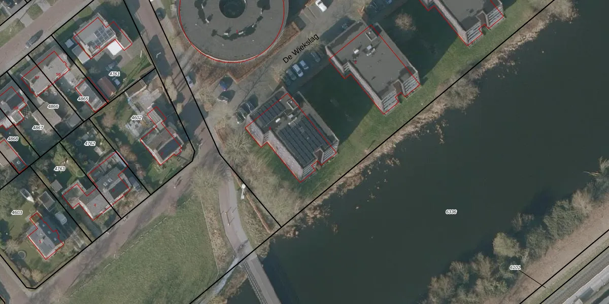 Het perceel waarop De Wiekslag 3-402 staat heeft een oppervlakte van 8370 m². Dit is een zeer groot perceel. De perceeloppervlakte wordt geregistreerd door het Kadaster. Gedetailleerde informatie over de maten van dit perceel kunt u vinden in het rapport Kadastrale kaart met maatvoering van De Wiekslag 3-402.