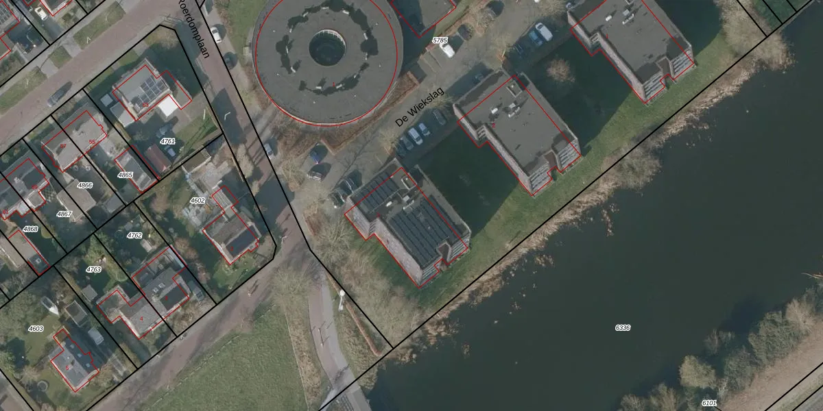 Het perceel waarop De Wiekslag 3-103 staat heeft een oppervlakte van 8370 m². Dit is een zeer groot perceel. De perceeloppervlakte wordt geregistreerd door het Kadaster. Gedetailleerde informatie over de maten van dit perceel kunt u vinden in het rapport Kadastrale kaart met maatvoering van De Wiekslag 3-103.