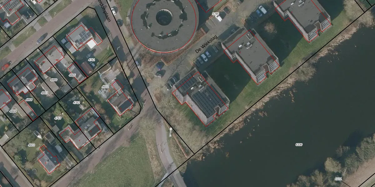 Het perceel waarop De Wiekslag 3-001 staat heeft een oppervlakte van 8370 m². Dit is een zeer groot perceel. De perceeloppervlakte wordt geregistreerd door het Kadaster. Gedetailleerde informatie over de maten van dit perceel kunt u vinden in het rapport Kadastrale kaart met maatvoering van De Wiekslag 3-001.