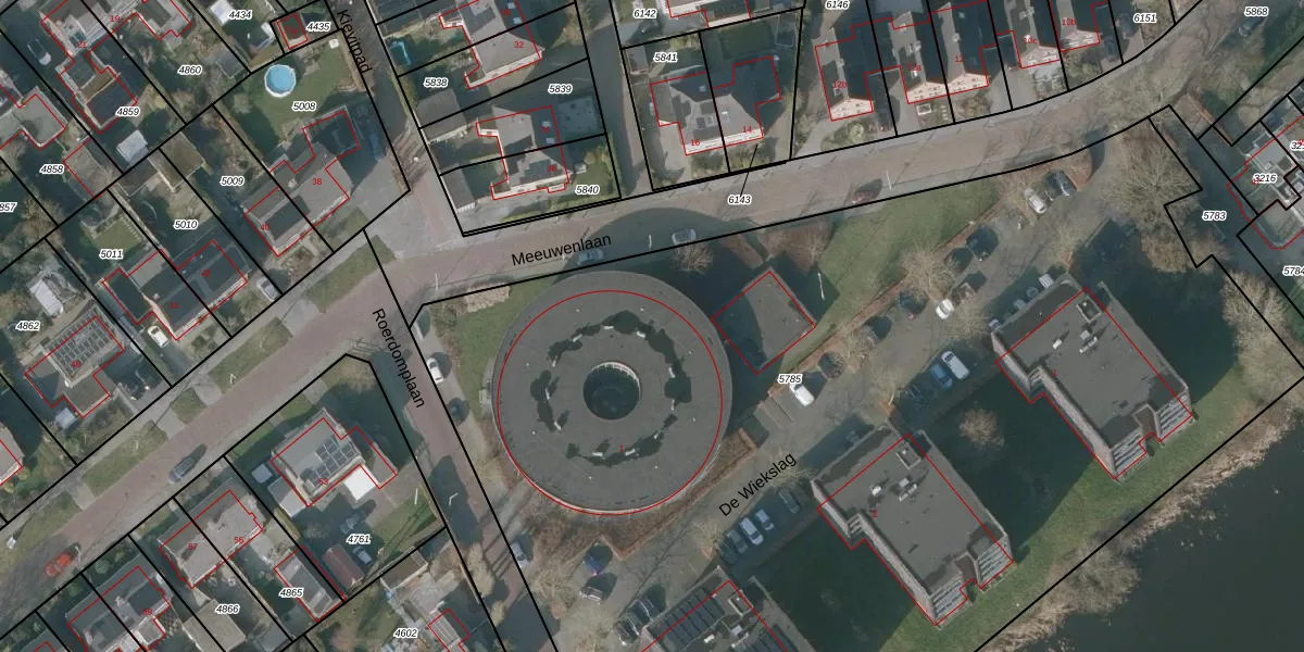 Het perceel waarop De Wiekslag 4-106 staat heeft een oppervlakte van 8370 m². Dit is een zeer groot perceel. De perceeloppervlakte wordt geregistreerd door het Kadaster. Gedetailleerde informatie over de maten van dit perceel kunt u vinden in het rapport Kadastrale kaart met maatvoering van De Wiekslag 4-106.