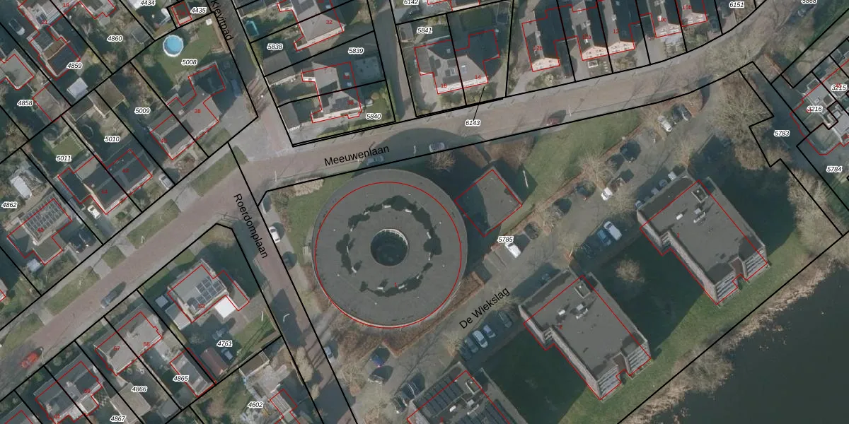 Het perceel waarop De Wiekslag 4-105 staat heeft een oppervlakte van 8370 m². Dit is een zeer groot perceel. De perceeloppervlakte wordt geregistreerd door het Kadaster. Gedetailleerde informatie over de maten van dit perceel kunt u vinden in het rapport Kadastrale kaart met maatvoering van De Wiekslag 4-105.