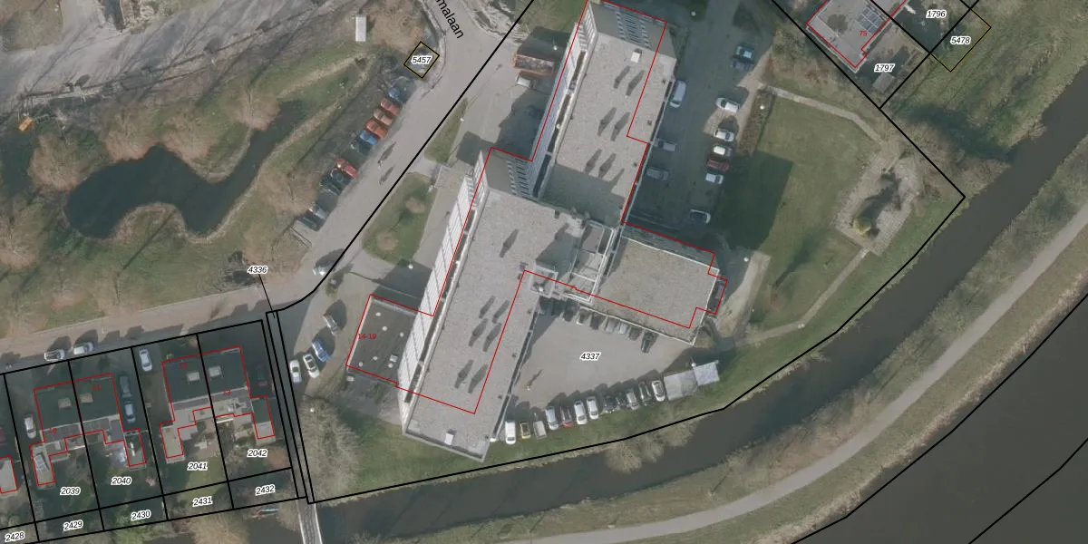 Het perceel waarop Dekamalaan 17-324 staat heeft een oppervlakte van 7665 m². Dit is een zeer groot perceel. De perceeloppervlakte wordt geregistreerd door het Kadaster. Gedetailleerde informatie over de maten van dit perceel kunt u vinden in het rapport Kadastrale kaart met maatvoering van Dekamalaan 17-324.