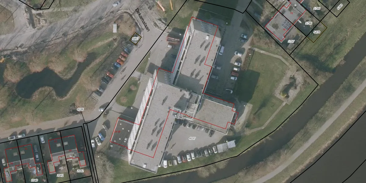 Het perceel waarop Dekamalaan 17-315 staat heeft een oppervlakte van 7665 m². Dit is een zeer groot perceel. De perceeloppervlakte wordt geregistreerd door het Kadaster. Gedetailleerde informatie over de maten van dit perceel kunt u vinden in het rapport Kadastrale kaart met maatvoering van Dekamalaan 17-315.