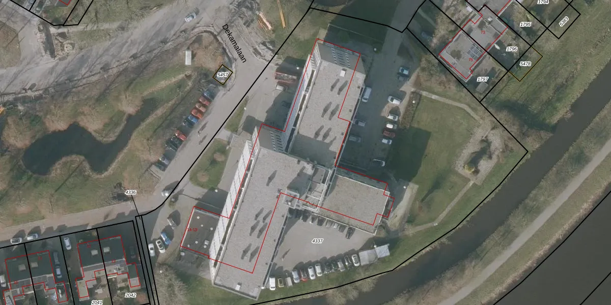 Het perceel waarop Dekamalaan 17-312 staat heeft een oppervlakte van 7665 m². Dit is een zeer groot perceel. De perceeloppervlakte wordt geregistreerd door het Kadaster. Gedetailleerde informatie over de maten van dit perceel kunt u vinden in het rapport Kadastrale kaart met maatvoering van Dekamalaan 17-312.