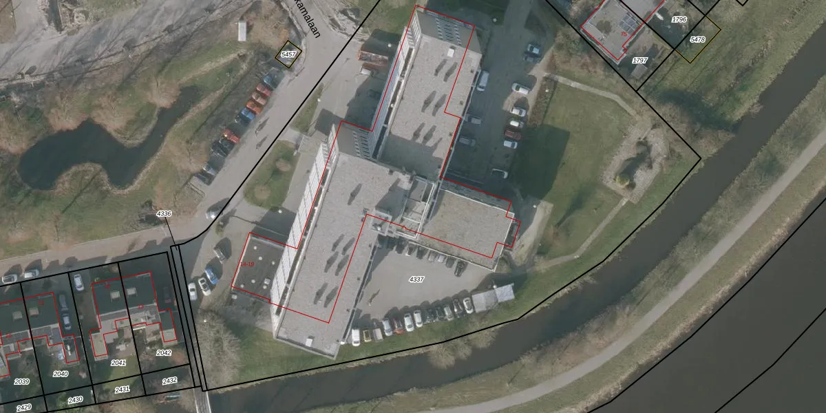 Het perceel waarop Dekamalaan 17-617 staat heeft een oppervlakte van 7665 m². Dit is een zeer groot perceel. De perceeloppervlakte wordt geregistreerd door het Kadaster. Gedetailleerde informatie over de maten van dit perceel kunt u vinden in het rapport Kadastrale kaart met maatvoering van Dekamalaan 17-617.