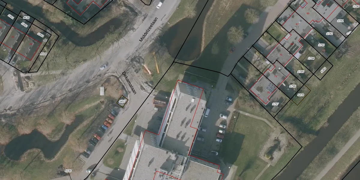 Het perceel waarop Dekamalaan 19 staat heeft een oppervlakte van 7665 m². Dit is een zeer groot perceel. De perceeloppervlakte wordt geregistreerd door het Kadaster. Gedetailleerde informatie over de maten van dit perceel kunt u vinden in het rapport Kadastrale kaart met maatvoering van Dekamalaan 19.
