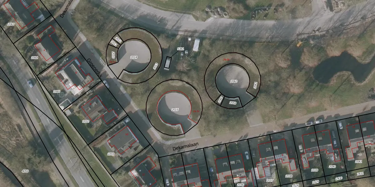 Het perceel waarop Dekamalaan 2-q staat heeft een oppervlakte van 708 m². Dit is een groot perceel. De perceeloppervlakte wordt geregistreerd door het Kadaster. Gedetailleerde informatie over de maten van dit perceel kunt u vinden in het rapport Kadastrale kaart met maatvoering van Dekamalaan 2-q.