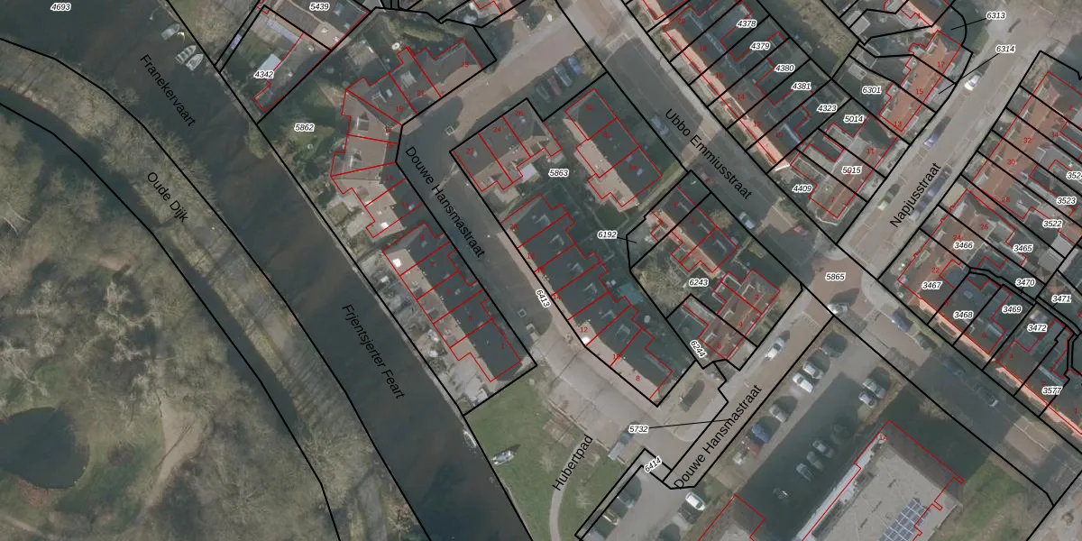 Douwe Hansmastraat 16 is gelegen op kadastraal perceel SNE00A5863. Deze kadastrale aanduiding is uniek en wordt gebruikt door het Kadaster om eigendomsrechten en andere zakelijke rechten vast te leggen. Het perceel maakt onderdeel uit van de kadastrale gemeente Sneek.