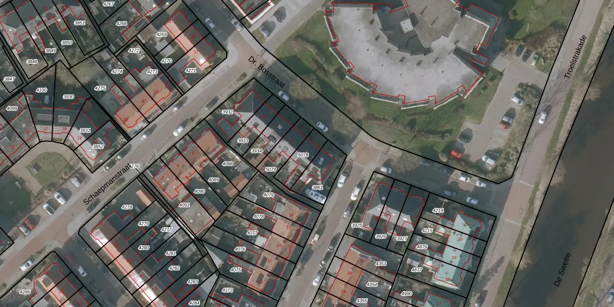 Dr. Bosstraat 7 is gelegen op kadastraal perceel SNE00A5078. Deze kadastrale aanduiding is uniek en wordt gebruikt door het Kadaster om eigendomsrechten en andere zakelijke rechten vast te leggen. Het perceel maakt onderdeel uit van de kadastrale gemeente Sneek.