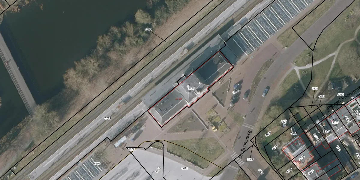 Dr. Boumaweg 18 is gelegen op kadastraal perceel SNE00A5797. Deze kadastrale aanduiding is uniek en wordt gebruikt door het Kadaster om eigendomsrechten en andere zakelijke rechten vast te leggen. Het perceel maakt onderdeel uit van de kadastrale gemeente Sneek.