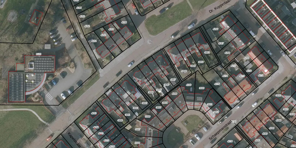 Dr. Kuyperlaan 12 is gelegen op kadastraal perceel SNE00A3845. Deze kadastrale aanduiding is uniek en wordt gebruikt door het Kadaster om eigendomsrechten en andere zakelijke rechten vast te leggen. Het perceel maakt onderdeel uit van de kadastrale gemeente Sneek.