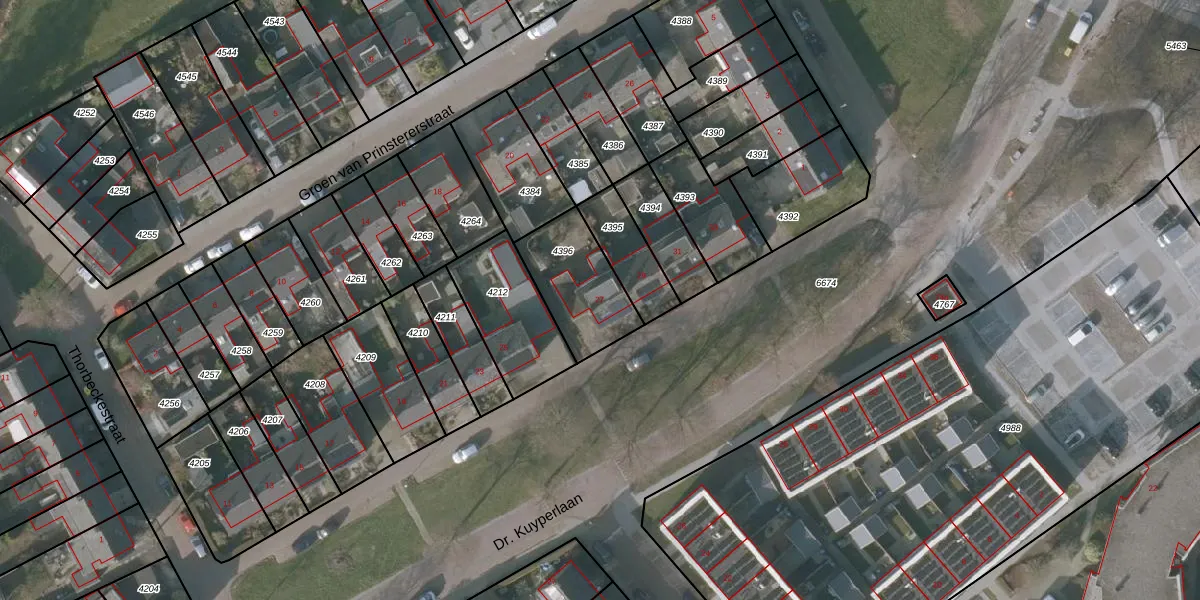 Dr. Kuyperlaan 27 is gelegen op kadastraal perceel SNE00A4396. Deze kadastrale aanduiding is uniek en wordt gebruikt door het Kadaster om eigendomsrechten en andere zakelijke rechten vast te leggen. Het perceel maakt onderdeel uit van de kadastrale gemeente Sneek.